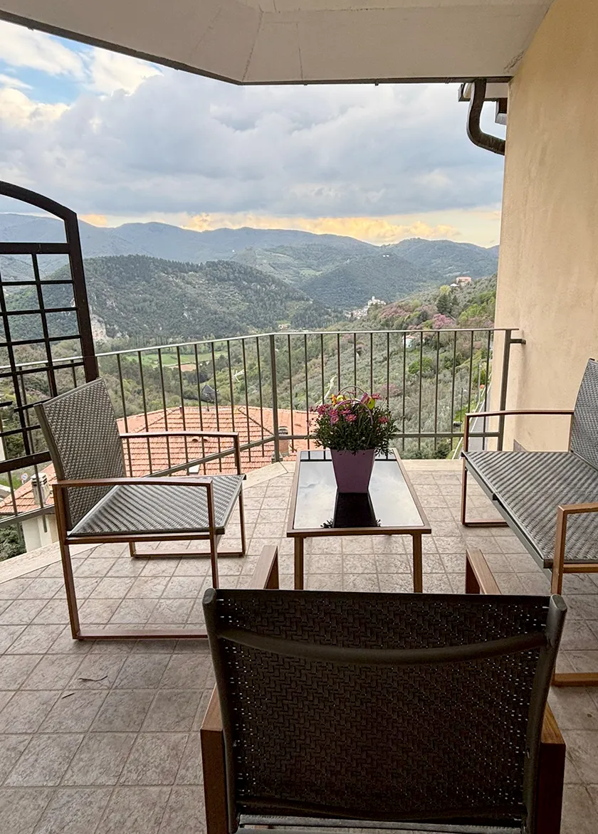 Un terrazzo panoramico con vista sulla valle, arricchito da piante vere e un comodo divanetto, sarà lo sfondo ideale per i tuoi aperitivi e le colazioni all’aria aperta.